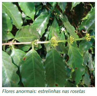 A ocorrência de flores anormais em um cafeeiro tem como causa a exposição precoce das partes internas da flor e como consequência pode ocorrer o abortamento da florada.