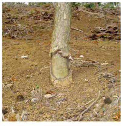 Esses danos localizam-se geralmente na porção do caule próximo ao solo e são uma porta de entrada para doenças ou até mesmo levar a planta a morte.