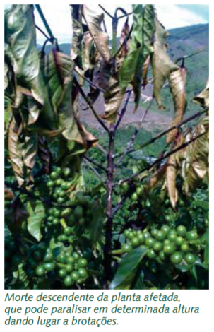 Caracteriza-se pela descoloração generalizada de parte da folhagem do topo das plantas, sendo de ocorrência mais restrita às regiões altas e frias, normalmente acima de 900 metros. A arborização do cafezal pode contribui para amenizar os efeitos.