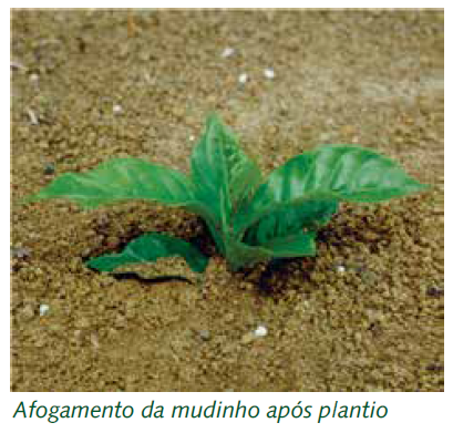 O plantio profundo das mudas ficando o colo das plantas abaixo do nível do solo caracteriza o afogamento.