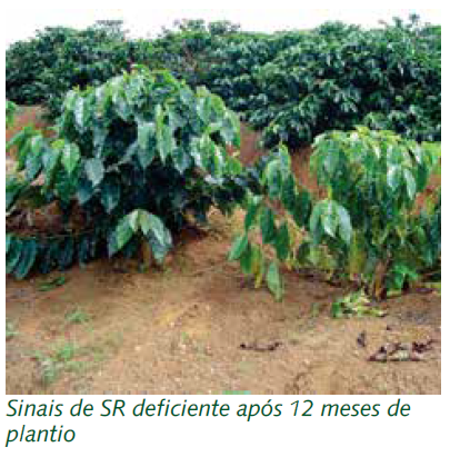 Quando algum desses problemas acontece na implantação da lavoura, a planta tem dificuldade de se estabelecer, gerando atrasos significativos no crescimento, amarelecimento generalizado, murcha, desfolhamento e, muitas vezes, morte das plantas mais afetadas. Esses sintomas são mais evidentes no período de secas.