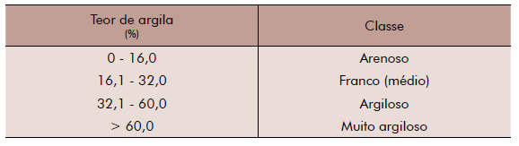 Após obtenção dos valores de areia, silte e argila pode-se definir a classe textural a que pertence o solo. Duas classificações podem ser usadas. A classificação simplificada, que considera somente o teor de argila contemplando quatro classes e a classificação detalhada, que considera os teores das três frações e contempla 13 classes.