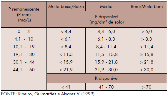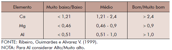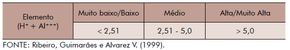 Unidade: cmol(c)/dm3 de solo.