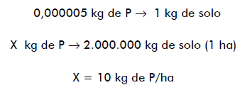 5 mg de P em 1 kg de solo, ou, 0,000005 kg de P em 1 kg de solo.