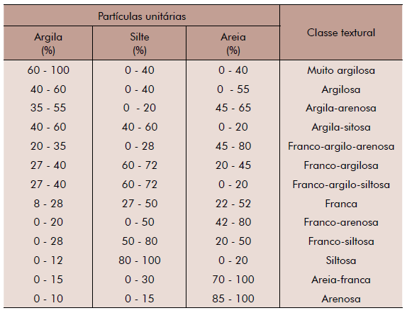 A interpretação simplificada das classes texturais do solo é apresentada a seguir: