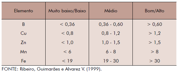 A interpretação dos resultados para micronutrientes é a seguinte:
