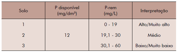 Considerando três solos com um mesmo teor de P disponível, porém, valores diferentes de P-rem: