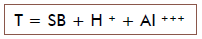 A CTC a pH 7 (T) considera todas as cargas do solo (permanentes e dependentes do pH), caso o pH do solo seja ajustado a 7 é calculada somando a SB com a acidez potencial utilizando a fórmula:
