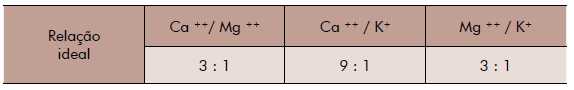 A atenção a estas relações é bastante importante, uma vez que estes nutrientes disputam os mesmos pontos de troca da CTC. Assim, o excesso de um pode levar à deficiência induzida dos outros. Cada espécie vegetal exige uma relação específica entre as bases, de acordo com sua necessidade nutricional.