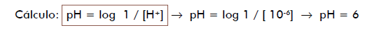 Exemplo: 10-6 mols de H+/ litro de solução.