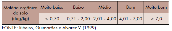 A interpretação dos resultados para a MO do solo é a seguinte: