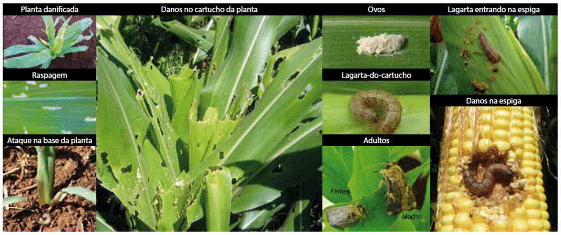 A lagarta-do-cartucho pode infestar as plantas usadas na cobertura vegetal de lavouras conduzidas pelo sistema de semeadura direta. Depois da dessecação, essa lagarta se alimenta de plântulas de milho, seccionando-as rente ao solo, o que reduz a população de plantas das lavouras. Essa praga também pode abrir uma galeria na base de plantas que estão nas fases iniciais de desenvolvimento, causando a morte da planta.