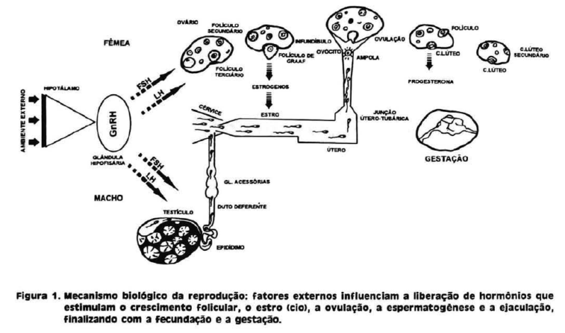 O mecanismo biológico da reprodução de equinos está esquematizado na Figura 1.