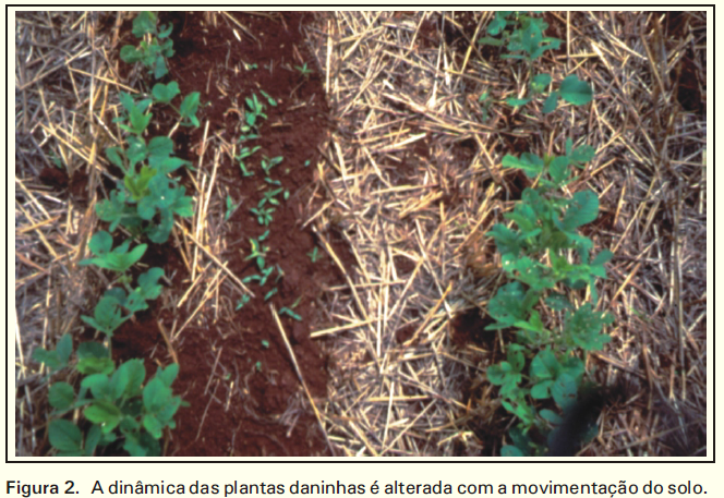 A semeadura direta promove modificações em fatores importantes como temperatura e umidade do solo, além de alterar também as condições físico-químicas. O resíduo vegetal que permanece na superfície, por ser uma barreira física, reduzem a incidência de luz. O banco de sementes é alterado e a dinâmica das plantas invasoras pode ser completamente diferente quando se compara com os sistemas chamados de convencional, arado + gradagem, ou reduzido, escarificador + gradagem, (Gazziero, 1990).