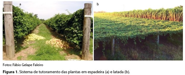 Como o maracujá é uma planta escandente, para o estabelecimento do pomar vai ser necessário algum tipo de suporte para o desenvolvimento das plantas. Em pomares comerciais o sistema mais utilizado é o da espaldeira, embora o cultivo em latada também possa ser utilizado (RUGGIERO et al. 1996) (Figura 1).