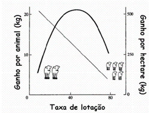 O entendimento da relação entre taxa de lotação e o desempenho dos animais é primordial no manejo das pastagens (FIGURA 1).