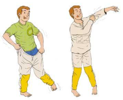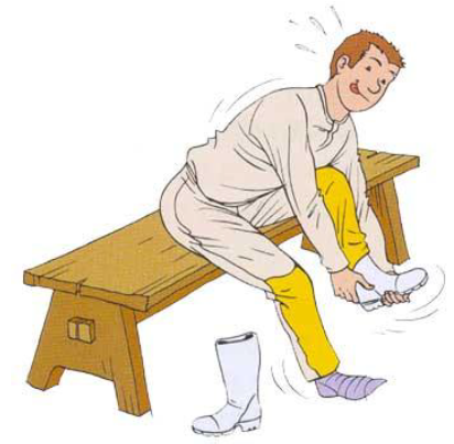 Deve-se desamarrar o cordão e deslizar pelas pernas do aplicador sem serem viradas do avesso.