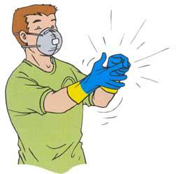 Deve-se puxar a ponta dos dedos das duas luvas aos poucos, de forma que elas possam ir se desprendendo simultaneamente. Não devem ser viradas ao avesso, o que dificultaria o próximo uso e contaminaria a parte interna.
