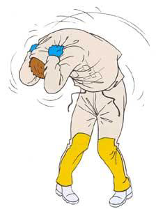Deve-se desamarrar o cordão, em seguida curvar o tronco para baixo e puxar a parte superior (os ombros) simultaneamente, de maneira que o jaleco não seja virado do avesso e a parte