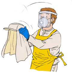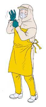Após a aplicação, normalmente a superfície externa dos EPI está contaminada. Portanto, na retirada dos EPI, é importante evitar o contato das áreas mais atingidas com o corpo do usuário. Antes de começar retirar os EPI, recomenda-se que o aplicador lave as luvas vestidas. Isto ajudará a reduzir os riscos de exposição acidental.