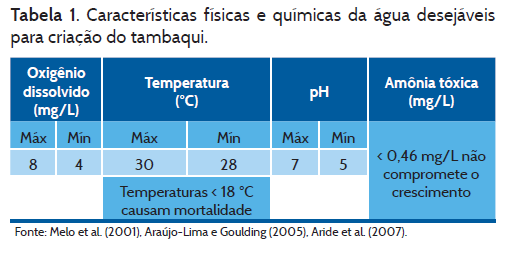 Por isso, é importante monitorar constantemente a qualidade da água da criação (Tabela 1), fazer biometrias periódicas dos peixes para acompanhar o crescimento e ficar atento ao comportamento ou ao aparecimento de sinais distintos.