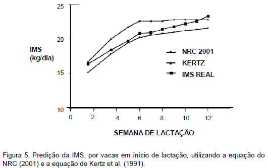 A Figura 5 compara as estimativas do NRC (2001) com os dados de Kertz et al. (1991) e o consumo real.