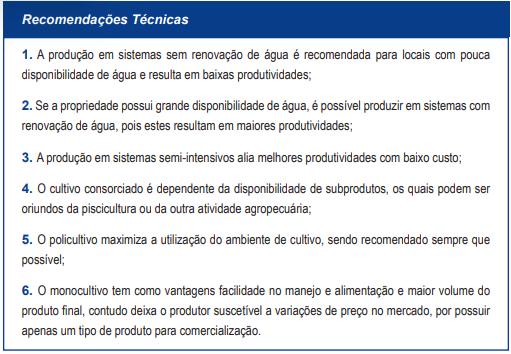 LIMA, Adriana Ferreira. Sistemas de produção de peixes. Piscicultura de água doce. Multiplicando conhecimentos, v. 1, p. 97-140, 2013.