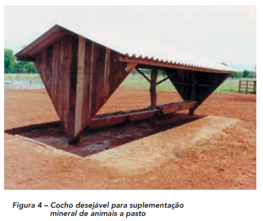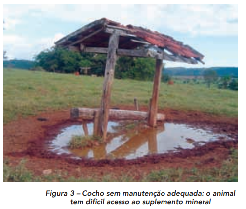 Também é importante salientar a manutenção dos cochos saleiros. Estes, de preferência, devem ser cobertos para proteção contra as chuvas e ter correto dimensionamento (em torno de 5 cm de comprimento por animal).