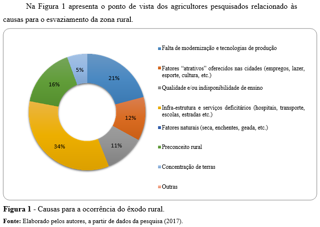 Adentrando a análise da pesquisa, primeiramente cabe destacar que diversos são os motivos que fazem as pessoas migrarem para a zona urbana conforme descrito no referencial teórico. Autores consideram como fatores principais a modernização do setor agropecuário que prioriza tecnologias direcionadas ao agronegócio, falta de serviços essenciais disponibilizados pelo governo e desvalorização da agricultura familiar.