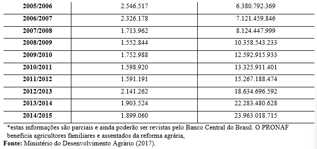 É nítida a evolução da aplicação do crédito do Pronaf, em especial nos últimos 10 anos safras, porém a grande maioria dos recursos é aplicada nas regiões mais desenvolvidas do país. De acordo com Bianchini (2015, p.96) “Apesar da evolução do PRONAF nas diferentes regiões do país, o volume de recursos continua concentrado nas regiões mais dinâmicas, em especial o Sul e o Sudeste onde se concentra o VBP da agricultura familiar.”