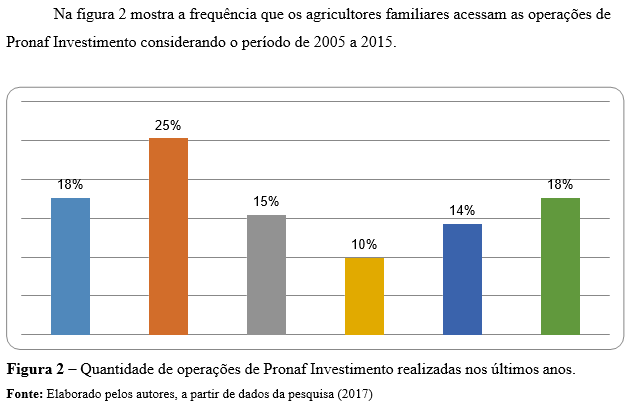 Essa afirmação se consolida, pois 89% agricultores que foram indagados disseram que não teriam realizado com capital próprio a atividade financiada pelo Pronaf. Essa resposta ainda indica que o agricultor familiar, em sua grande maioria, não dispõe de capital disponível para a implantação, ampliação ou modernização de estruturas produtivas que possam ter retorno a médio ou longo prazo e o crédito rural subsidiado se torna necessário para o desenvolvimento das atividades agropecuárias.