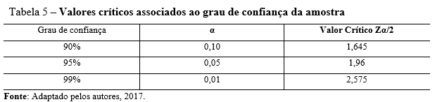 Os valores de confiança mais utilizados e os valores de Z correspondentes podem ser encontrados na Tabela 5.